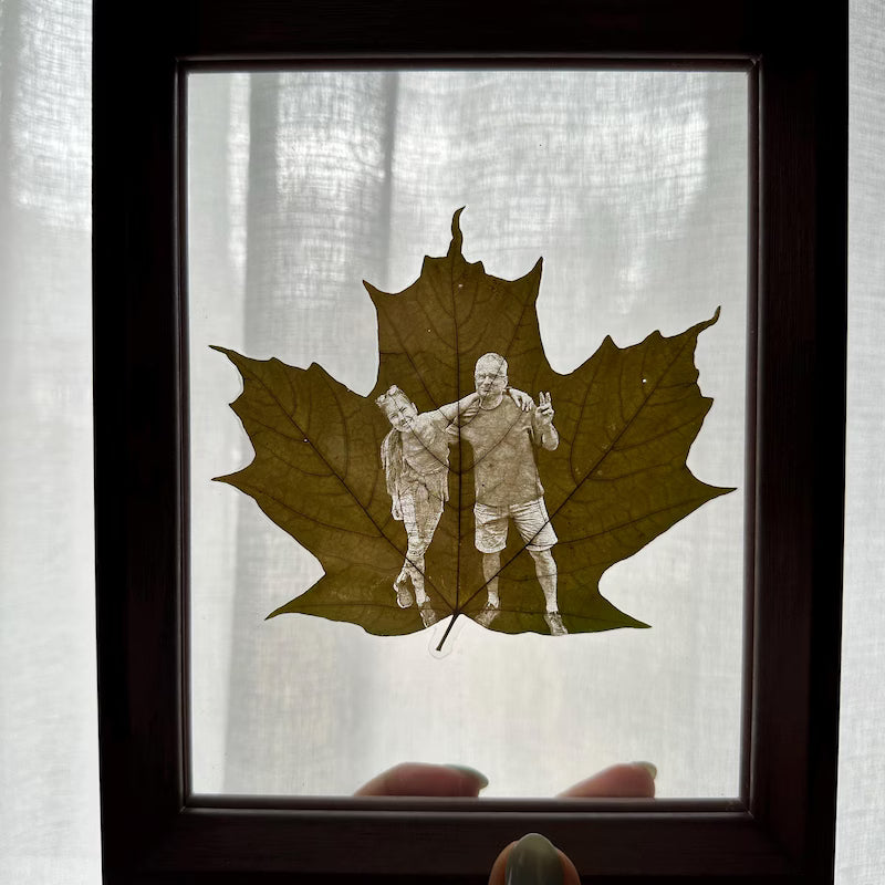 Each carving is handcrafted on a real preserved maple leaf and personalized with your photo. Choose between framed or unframed options to create a one-of-a-kind keepsake that’s perfect for gifting or treasuring forever.